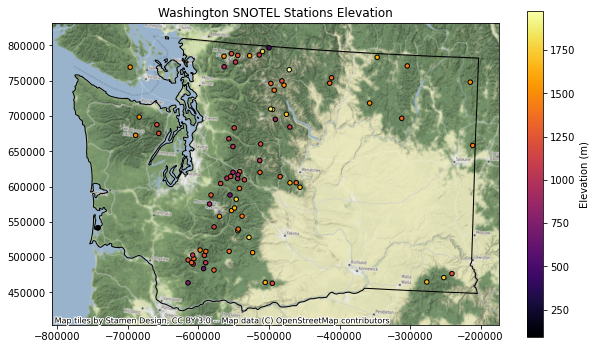 Washington State Snow Telemetry (SNOTEL) sites with elevation.